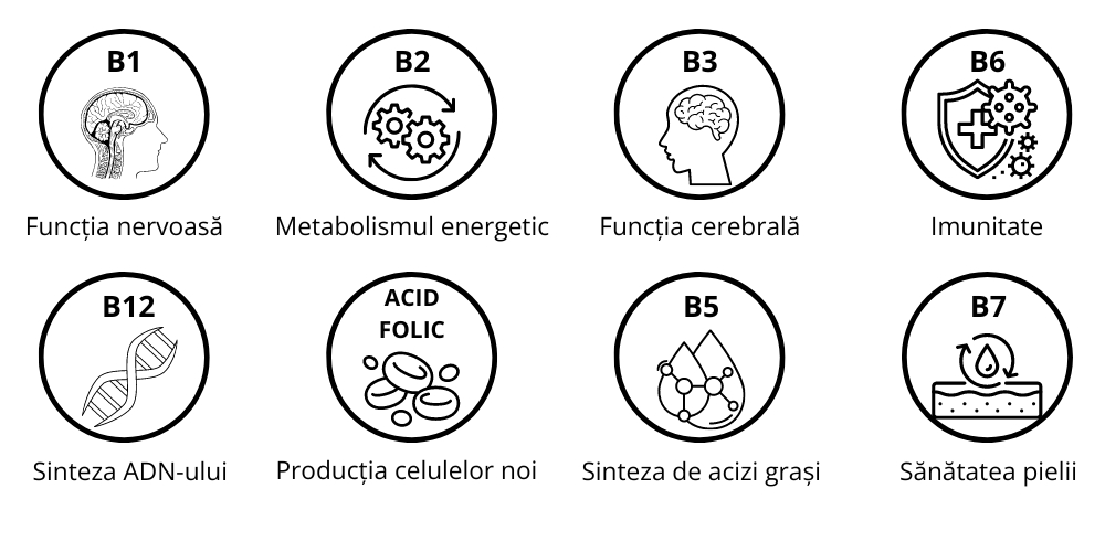 - Stres și oboseală: Vitaminele din complexul B sunt implicate în metabolismul energetic și pot ajuta la reducerea stresului și a oboselii.