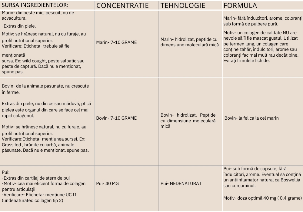 - Pentru piele, păr, unghii , oase și sănătate generală alege un colagen de tip I sau I+III, hidrolizat