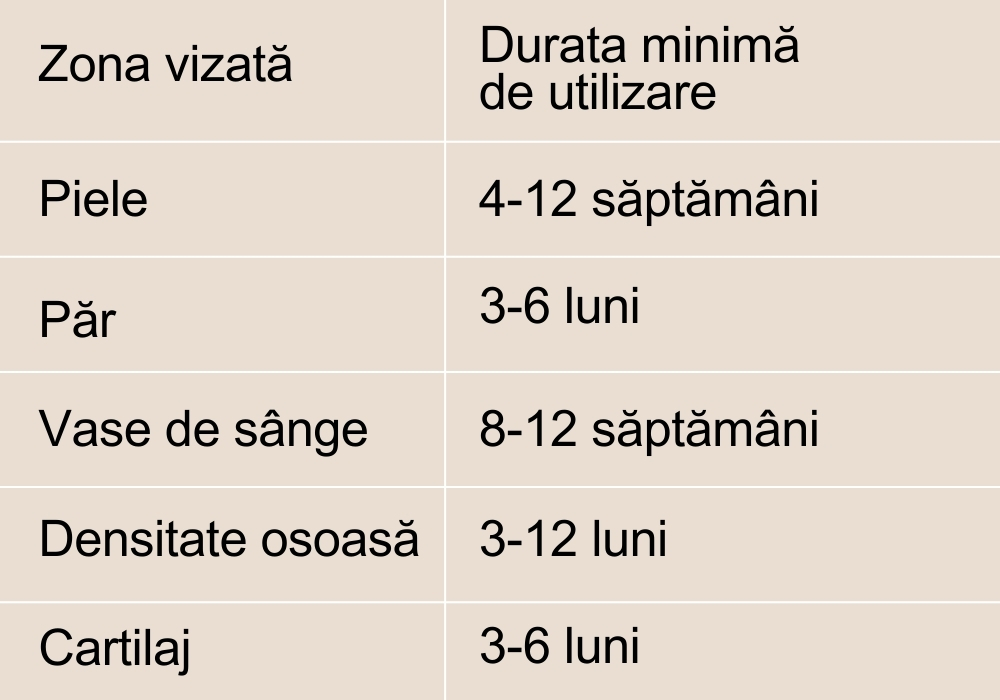 Durata necesară pentru a observa rezultatele utilizării suplimentelor de colagen variază în funcție de zona vizată, cum ar fi pielea, părul, vasele de sânge, densitatea osoasă și cartilajul. Iată câteva informații și studii relevante pentru fiecare categorie: