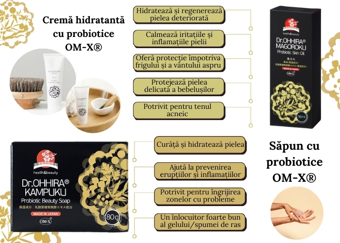Pe lângă probiotice și colagen, gama de produse Dr. Ohhira conține săpunul Kampuku și crema Magoroku, ambele având în compoziție extractul de legume fermentate OM-X®.