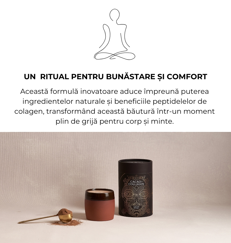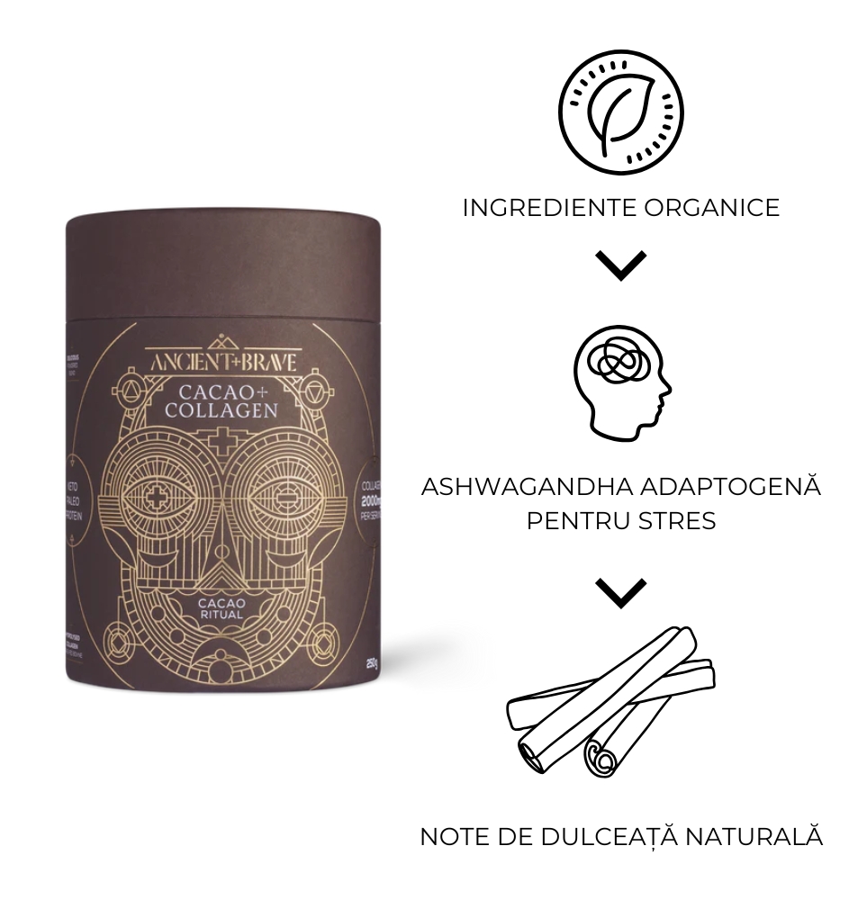 Cacao Collagen face parte din familia Ancient and Brave și este mai mult decât o simplă băutură, e o bucurie a simțurilor. Descoperă întreaga gamă AICI.