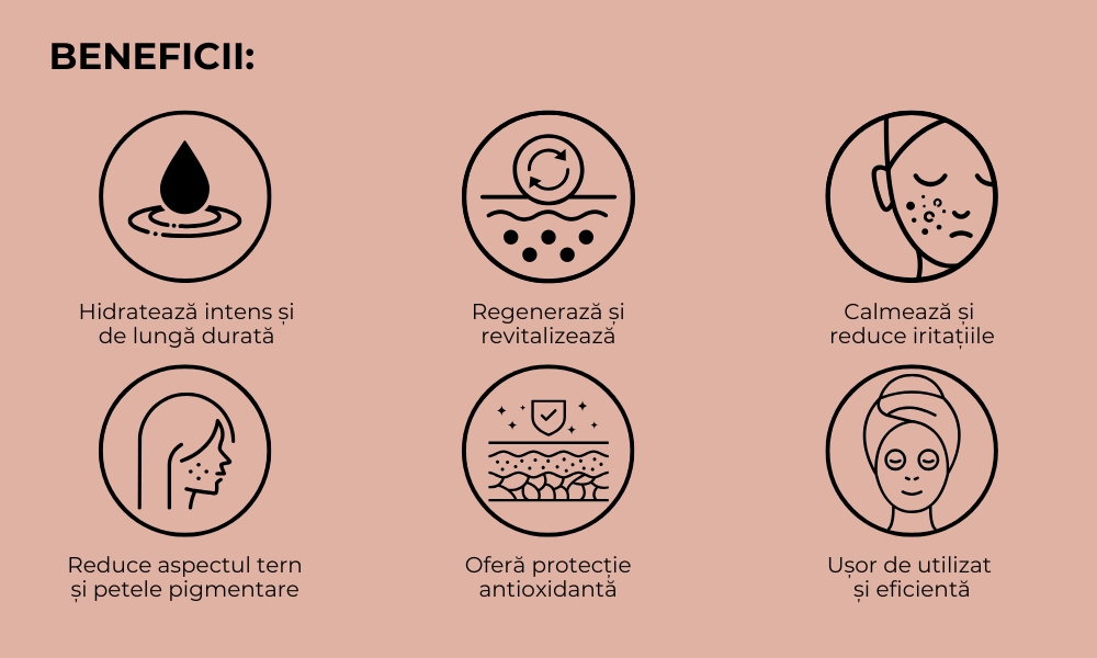 Curăț- pielea: Asigură-te că fața ta este curată și uscată înainte de aplicare pentru a permite absorbția optimă a ingredientelor active.