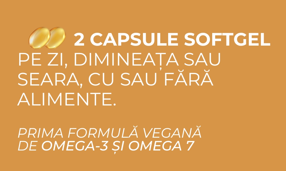 Luați 2 capsule softgel pe zi, dimineața sau seara, cu sau fără alimente.