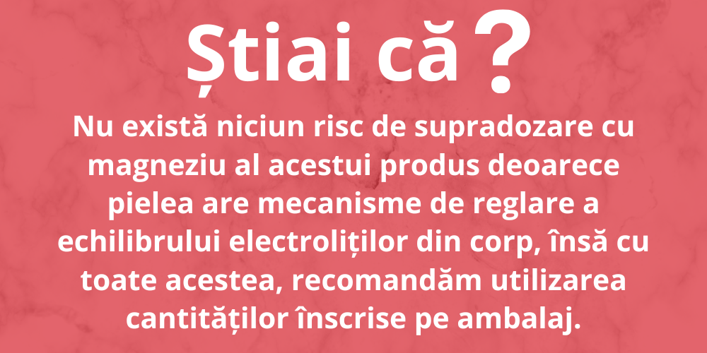 10 pulverizări direct pe piele furnizează 150mg de magneziu elementar optim absorbabil.