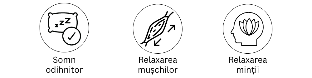 Loțiunea a fost special concepută pentru a ajuta la relaxarea mușchilor obosiți, încetinind activitatea senzorială și liniștind mintea înainte de culcare.