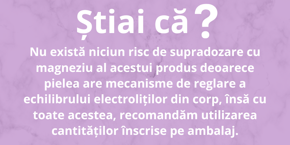 Dozare: 5 ml (4 pompe) de loțiune de somn de magneziu asigură minimum 120 mg de magneziu.