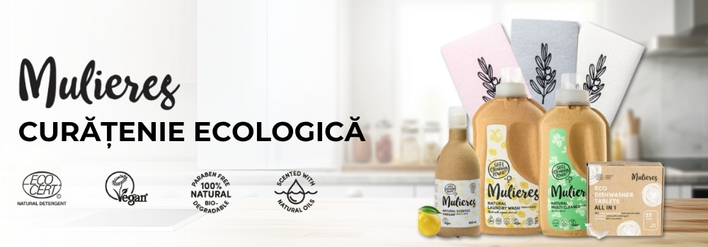 Lavetele de curățare Mulieres sunt naturale, reutilizabile și perfecte pentru curățenia de zi cu zi. Lavetele sunt biodegradabile, compostabile la sfârșitul reutilizării lor (după 24 de săptămâni se dizolvă complet în compost).