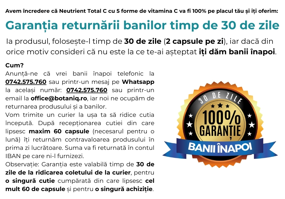 Capsula de Neutrient Total C Formula conține doar aceste ingrediente. Nu conține: aditivi, edulcoranți, coloranți, conservanți, aromatizanți.
