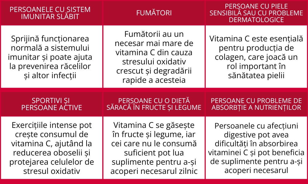 - formulă revoluționară cu 120mg de vitamina C, pentru:
