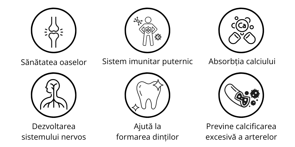 - Are un rol important în metabolismul osos și în menținerea sănătății osoase.